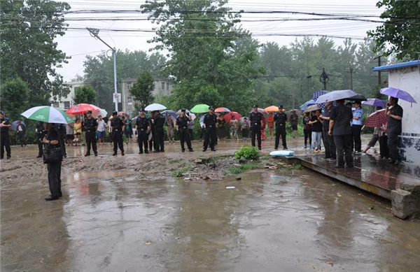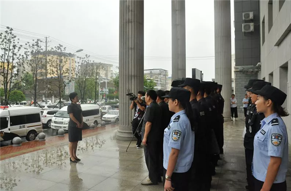 警戒法警及围观群众